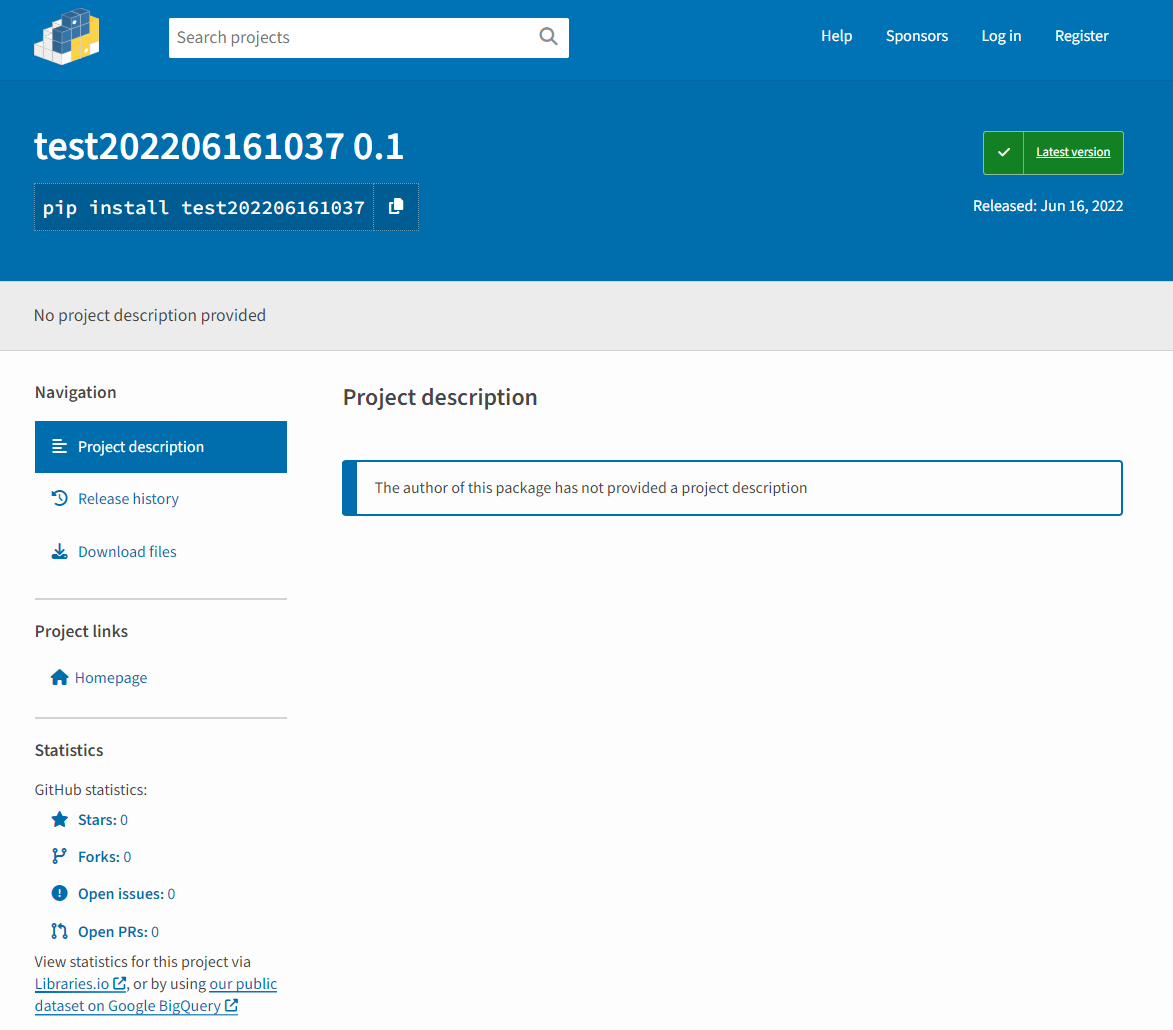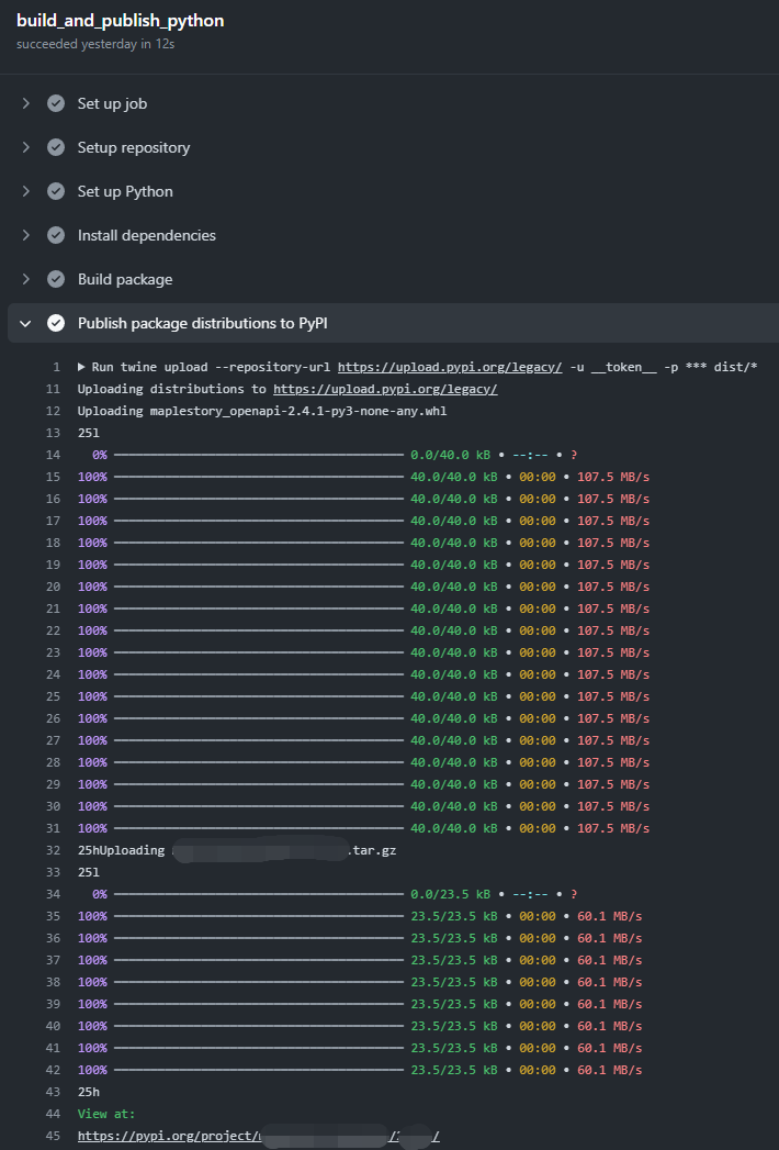모든 step이 정상적으로 종료되었으면 PyPi에 패키지 배포를 성공한 것이다!
